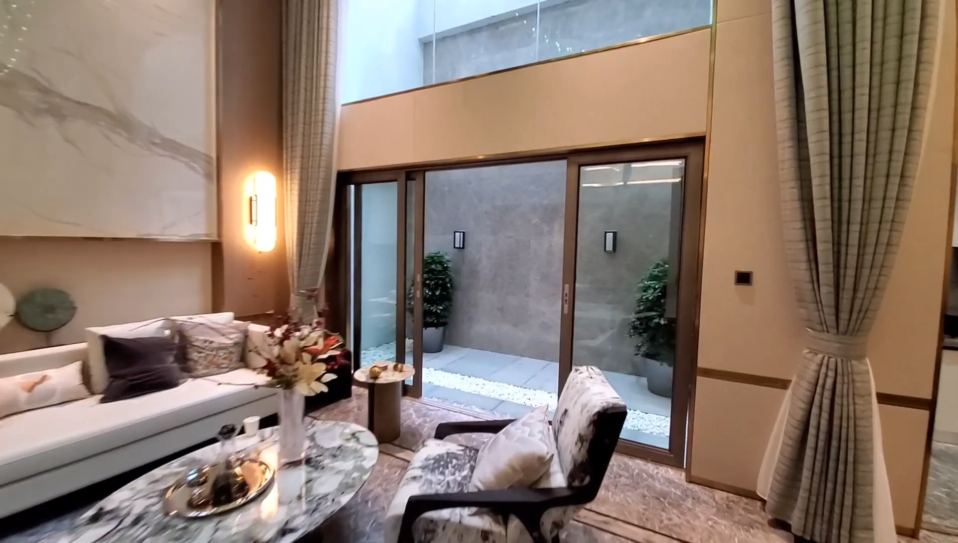 其实这三个空间交房的时候是空的,需要业主自己设计搭建,与旁边的5.8米挑高餐厅是一整个大的整体空间。